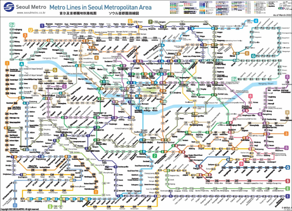 El transporte público no sólo sirve para moverse por la ciudad, sino también para ir a los aeropuertos: tiene muy buenas conexiones tanto con el aeropuerto de Incheon (Airport Railroad Line) como Gimpo (Airport Railroad Line, GoldLine, línea 5 y línea 9) e incluso entre ambos aeropuertos (Airport Railroad Line) en caso que tengan que hacer conexión.