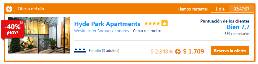 Este es un ejemplo de una oferta del día para una noche en un departamento de Londres, que depende siempre de las fechas y puede variar si las mismas cambian: