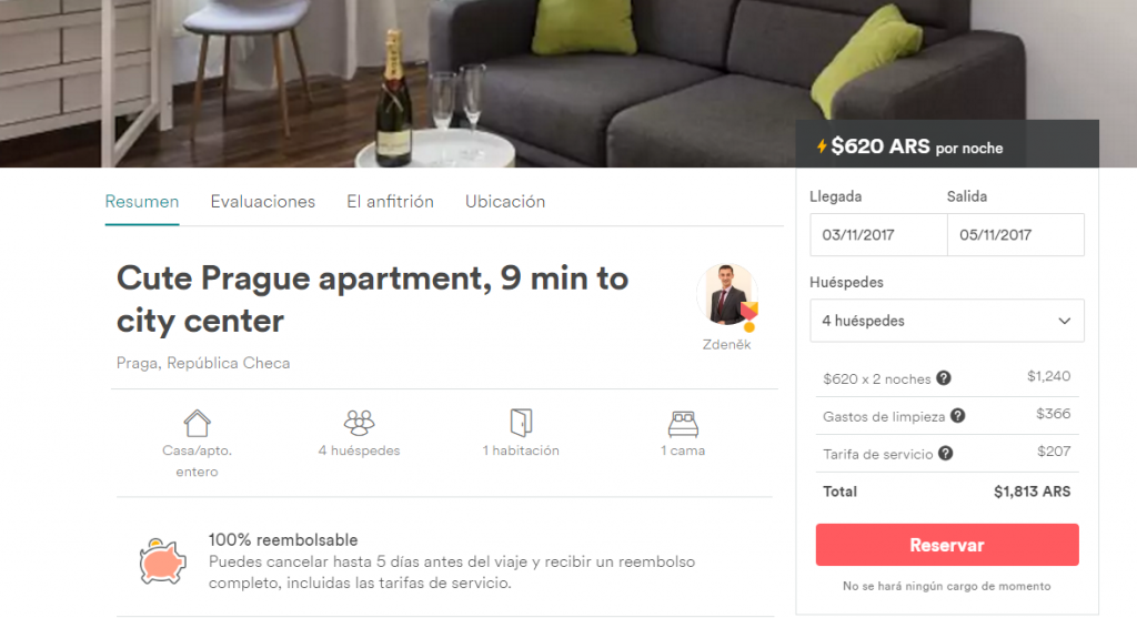 Las reservas por Airbnb son fáciles de hacer (ya hablamos de esto en alguna oportunidad) y tienen muchas opciones y departamentos en zonas en las que, quizás, un hotel nos saldría muchísimo más. Hoy en día también hay alquiler de departamento por Booking y, lo que tiene a favor es que pueden hacerse reservas por sólo una noche (algo que en Airbnb es menos común, ya que por lo general te piden un mínimo de noches para rentarte el departamento). Como no me canso de decir, cada uno tiene que ver las condiciones del viaje que va a hacer y pensar qué se ajusta mejor a sus planes. Si van a reservar por Airbnb, les dejo el link a mi perfil para que obtengan un pequeño descuento. Si se registran desde ahí o desde el perfil de un amigo, tienen un bono de $600 pesos para realizar su primera reserva (que supere los 1.100 pesos argentinos). Un regalito de la gente de Airbnb para que nos animemos a viajar con ellos. Actualización 11/04/18: El pasado Diciembre, realizamos nuestra primera reserva por la plataforma, y te cuento nuestra experiencia acá.