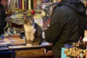 Perdidos en las calles de esta ciudad, dimos con la Libreria Acqua Alta: La più bella al mondo. Así te recibe este lugar, una verdadera belleza rústica dentro de esos detalles tan peculiares que tiene Venecia. La bienvenida nos la dio un gato, sintiéndose cómodo con los recovecos que presentaba la entrada. Acqua Alta está escondida, pero abre sus puertas con una cantidad infinita de libros distribuidos en estanterías, góndolas, mesas, bañeras y hasta en una escalera particular hecha con ellos. Este desorden, que tiene su encanto, no es sin una razón: la distribución de los libros está pensada para protegerlos del agua. Metidos en sus contenedores particulares, este lugar transformó un problema real en belleza y en el nombre que la distingue (agua alta).