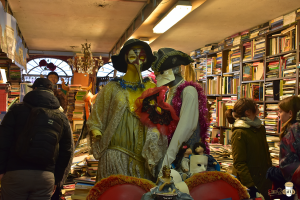 Es una pintura encantadora, rodeada de máscaras, gatos, libros viejos, nuevos, y detalles por todos lados. Está tan sobrecargado que parece imposible observar todos los rincones que desbordan de historia y literatura. Es otro de esos tantos pedacitos de Venecia para perderse por un rato.