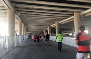 Los controles de seguridad no fueron nada diferente a lo que son acá en Buenos Aires. Como ya saben, no pueden pasarse líquidos y recomiendo ir sin mochila para agilizar las cosas, aunque entramos bastante rápido para ser un partido tan importante. La cancha no estaba llena ni por asomo, pero el sector popular del Flamengo (el local en aquella fecha), se encontraba bastante lleno de hinchas, que ya desde temprano hacían sonar sus canciones.