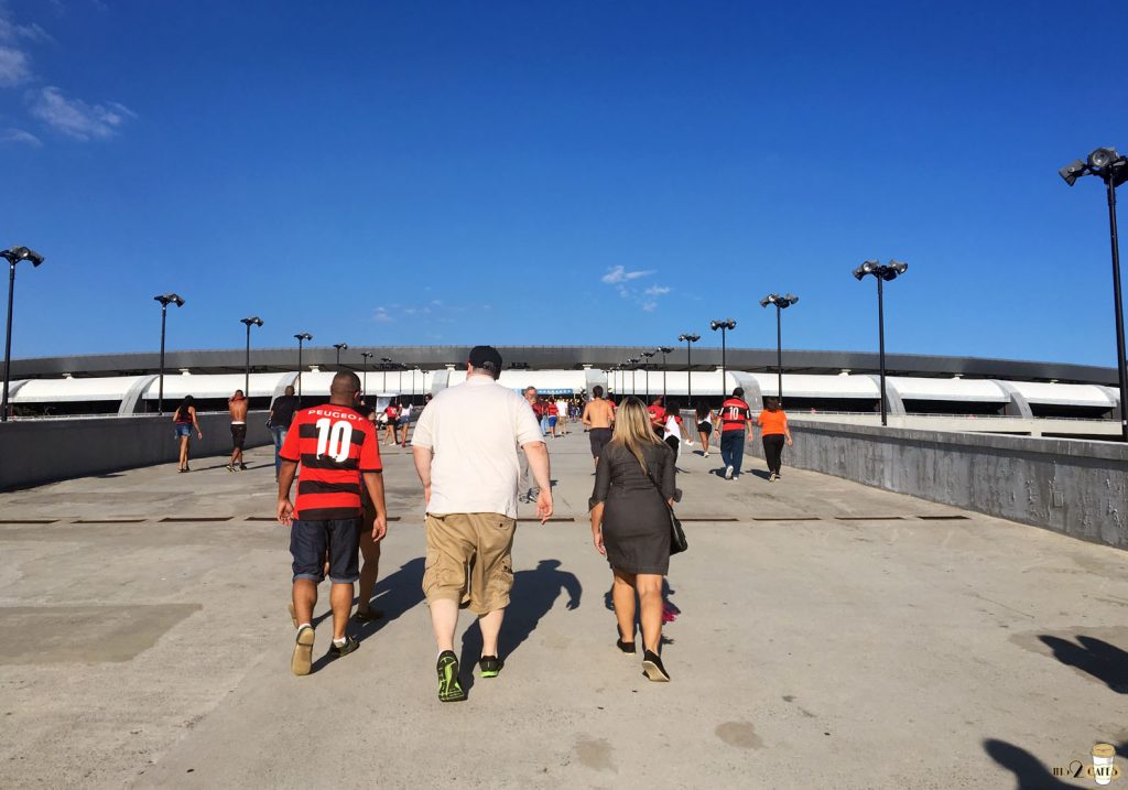 No obstante, estábamos muy cerca de la fecha y ya el sábado a la noche la posibilidad de comprar una entrada por internet no era una opción. Hay otras tres alternativas para aquellos que quieran ir a ver un partido en Brasil. Primero, hay tours que se organizan para ir a ver este tipo de partidos. Recuerdo que mis viejos me habían contado que, en su momento y con un panorama bastante distinto en los estadios, habían optado por estas empresas para ir a ver el clásico. Por lo general es la opción más cara, pero se encargan de las entradas, los traslados, los accesos… Te despreocupás de todo. Otra opción es comprar directamente en la boletería, antes del partido. Como les comenté, las filas eran largas, pero es una buena opción para comprar tickets a precios bajos hasta finalizado el primer tiempo. El estadio no estaba lleno, así que lo más probable es que pudieran conseguirse sin problemas. La otra opción, que fue a la que nosotros recurrimos, es averiguar en la recepción del hotel. Ellos se encargan de conseguir las entradas que, obviamente, terminan saliendo más que comprarlas por otra vía. Sin embargo, estando tan cerca de la fecha, era lo más rápido y nos olvidamos de tener que irlas a buscar. El precio fue, por entrada, de 130 reales (cuatro veces más que el precio original), pero no teníamos muchas alternativas.