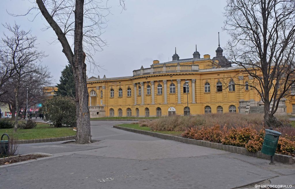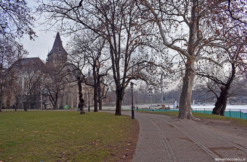 En invierno, esta zona tiene un color muy especial. Aunque no tuvimos nevadas durante nuestro paso por Hungría, los restos de escarcha podían verse por los caminos, con árboles pelados y ese tinte invernal que hace de Europa otra postal encantadora, y muy diferente a otras épocas del año. Este parque guarda una atmósfera muy especial, a medida que uno va caminando y se va acercando al increíble edificio que alberga al balneario Széchenyi.