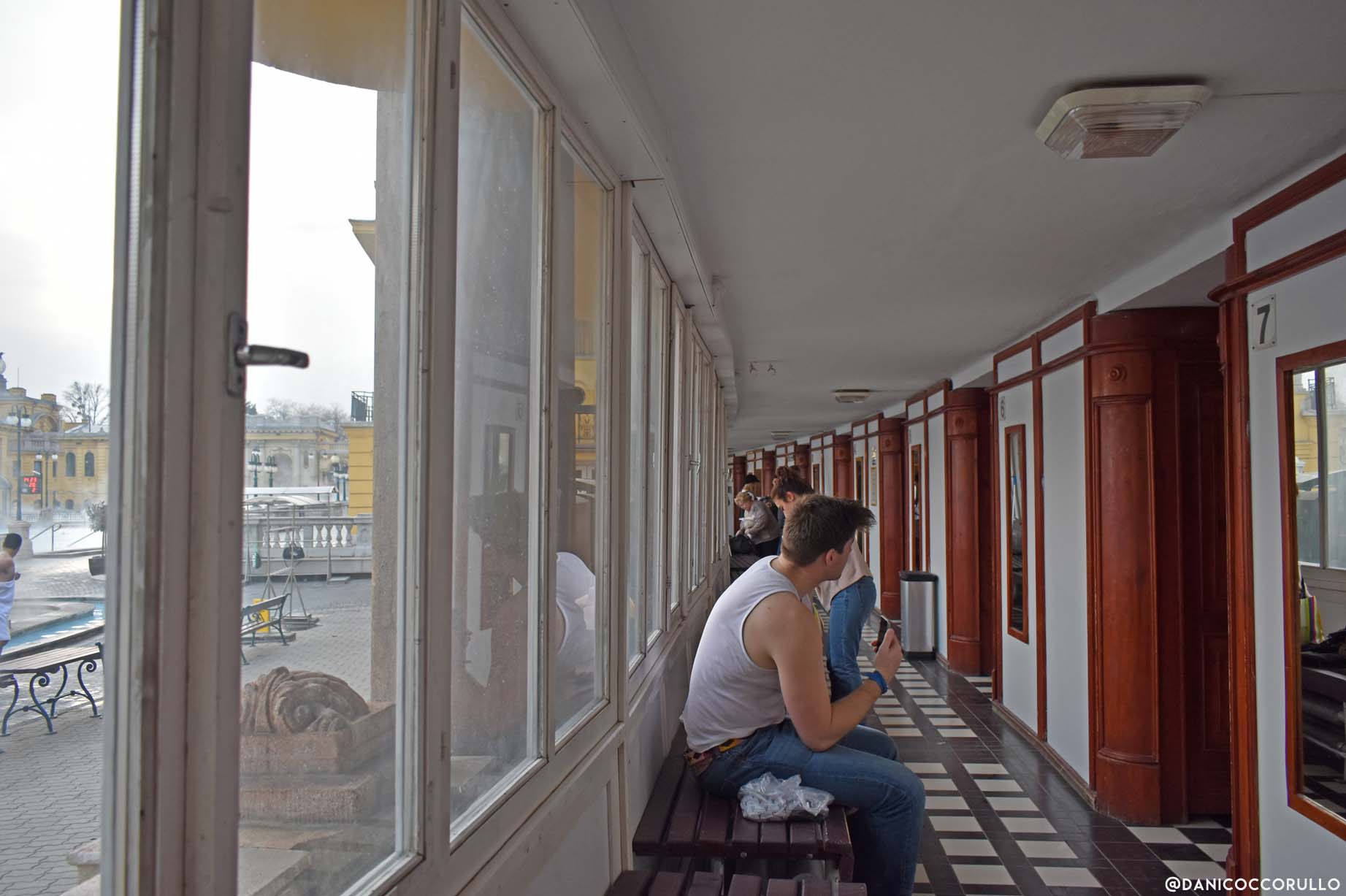 Como dije, ingresar al balneario es como volver en el tiempo. Desde los cambiadores hasta los alrededores, todo parece sacado de una película antigua, conservando muchos detalles y su estilo renacentista moderno. Había relativamente poca gente cuando nosotros fuimos, lo que nos permitió recorrer las instalaciones tranquilos, cambiarnos sin apuro y sacar muchas fotos incluso antes de ingresar a las piscinas.