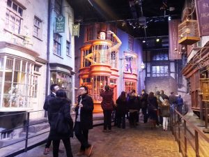 Llegada después de un viaje que se me hizo más bien rápido, tuve que aguardar en una sala, donde todos los visitantes nos encontrábamos rodeados de películas de Harry Potter hasta que nos llevaran hasta las puertas del Gran Comedor para explicarnos de qué iba todo eso. Las puertas se abren, y ahí están las mesas, que no son tan largas como en las películas pero igualmente espectaculares. Y las réplicas de los personajes más populares de la película, y la mesa de los profesores… El recorrido es todo así. Un sobresalto constante, una emoción increíble y una fascinación absoluta por cada detalle que se encuentra preciosamente guardado en esos estudios. Es, si pierden la noción del tiempo, perder casi todo el día acá adentro mirando todos los detalles. De verdad les digo, aunque pensaba que iba a ser relativamente breve, fueron horas perdida entre magia. Y cuando llegás a la tienda, aunque los precios son elevados, no te querés ir ni ahí.