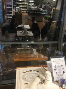 Aunque nosotros nos limitamos al trago, hay muchas opciones para comer y los precios, si bien no son super económicos, no tienen valores disparatados. Se puede comer un sandwich o una ensalada por 8 o 10 euros. Los platos principales ya están de 16 euros en adelante. También pueden tomarse un café por 3 euros o un capuccino por 5. El servicio de mesa es de 1 euro, con la cesta de pan incluída.