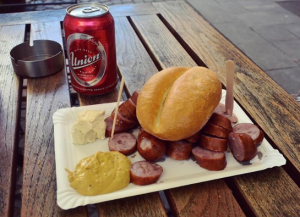 La salchicha está unos 5,90 euros y la sopa 3,50 (o 4,90 si la quieren con salchicha). Si sumamos una cerveza de un euro con cincuenta, obtenemos un muy buen menú por menos de ocho euros. Totalmente recomendable para los que disfrutan de probar los platos tradicionales de los países por los que van pasando.